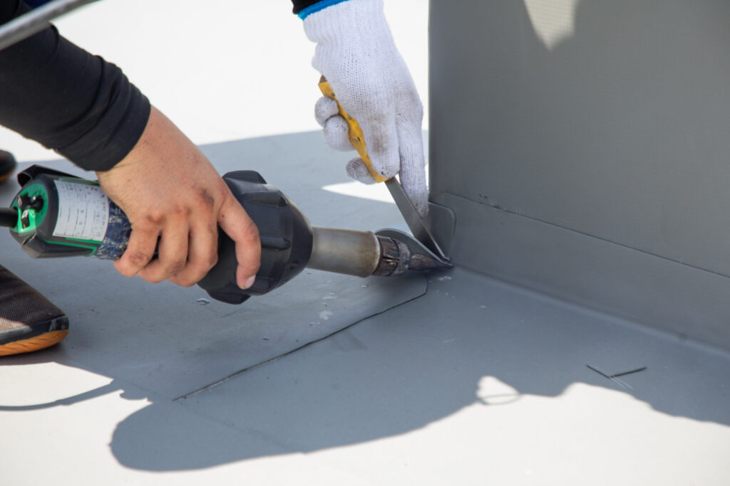「防水シート(雨漏りを防ぐシート上の防水層)」の継ぎ目は、建物の防水性能において注意が必要な箇所です。