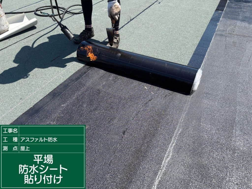 アスファルト防水とは、溶かしたアスファルトを下地に敷き込み、複数の防水シートを重ねることで防水層をつくる工法です。